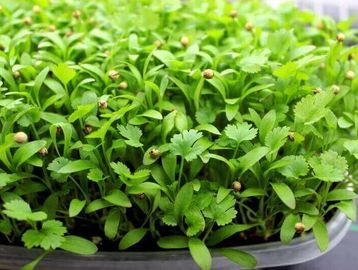 Cilantro microgreens are known for their bright citrusy flavor. The flavor adds freshness to food and can be used as a topping or an ingredient.