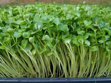 Daikon radish microgreens are substantial and crunchy. Full of vitamins and minerals with a distinct flavor of radishes.